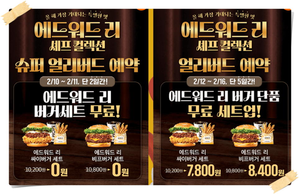 - 예약 완료 고객에게 '애드워드 리 셰프 컬렉션' 버거 세트 2종 무료 제공